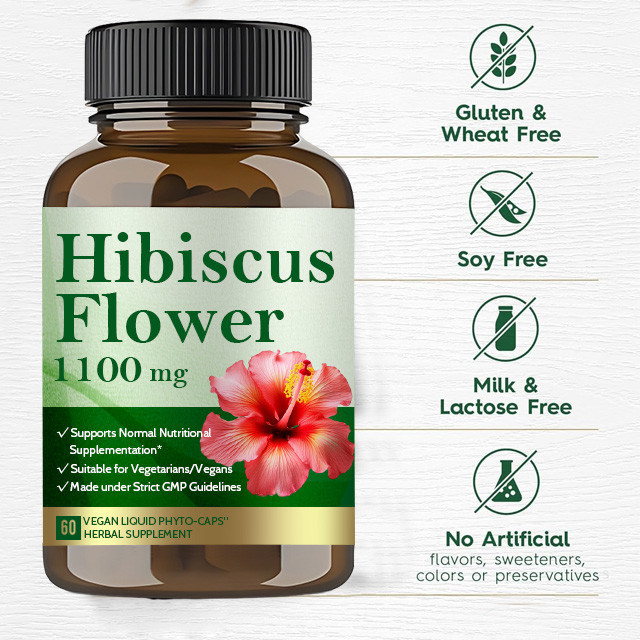 Nuestras cápsulas de extracto de flor de hibisco están formuladas para promover la salud del corazón y mantener niveles saludables de presión arterial.conocido por sus propiedades antioxidantes y beneficios cardiovasculares.